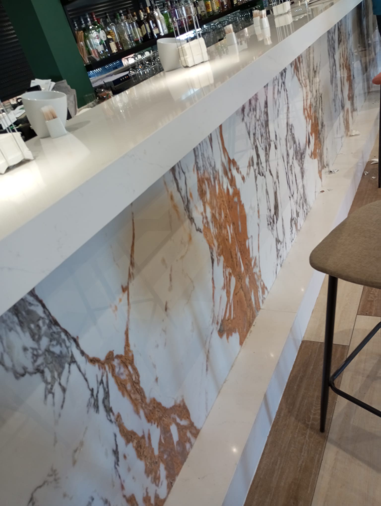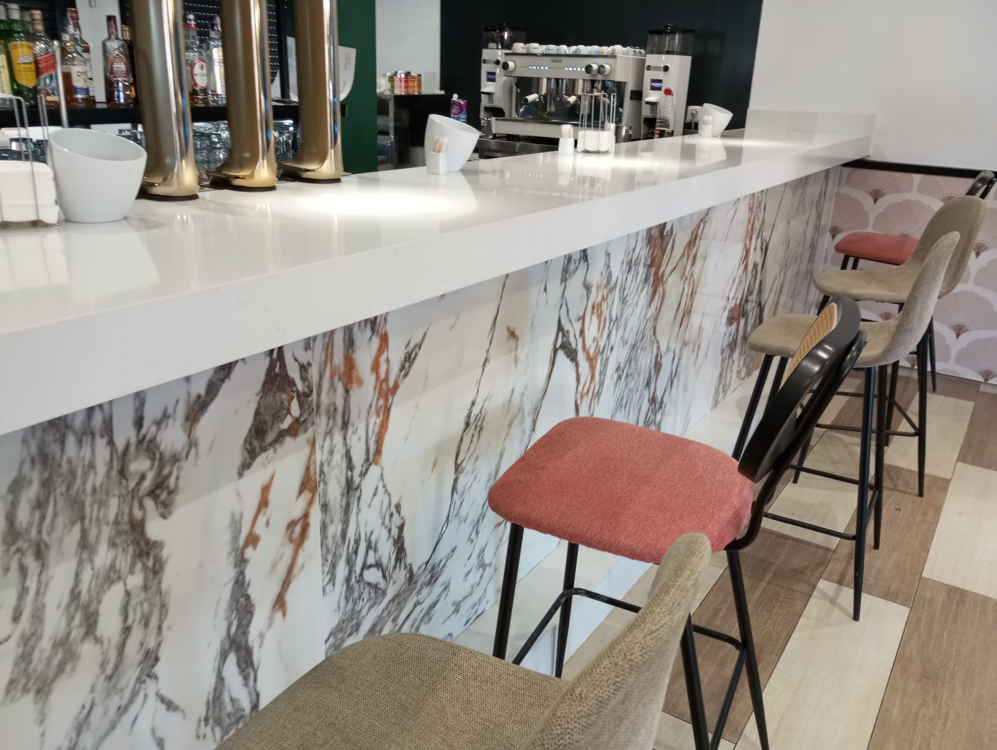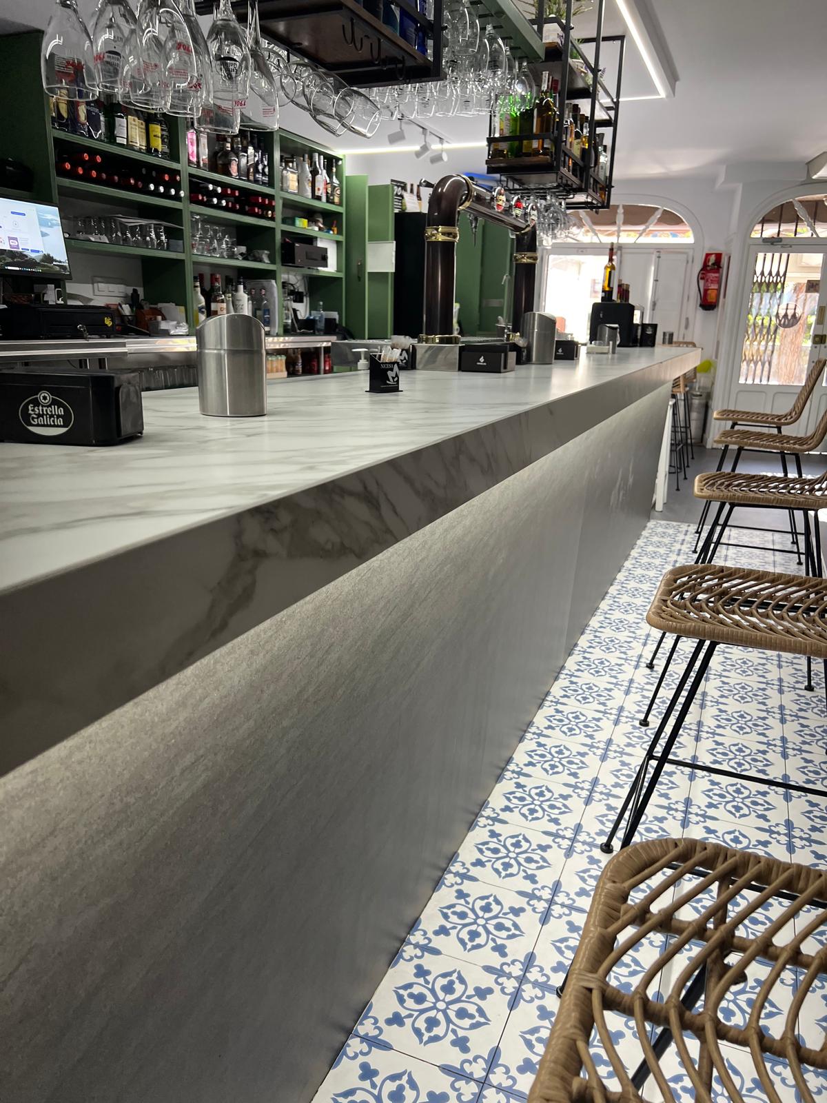 Realizamos barras de bares con acabados espectaculares. Utilizamos piedra natural de primera calidad y la conjugamos con la funcionalidad, comodidad y detalles estéticos.
